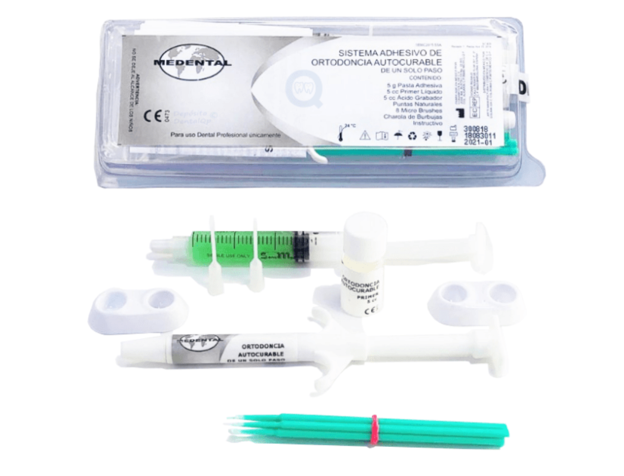 El sistema adhesivo de ortodoncia de un solo paso autocurable de Medental está diseñado para cementar brackets.